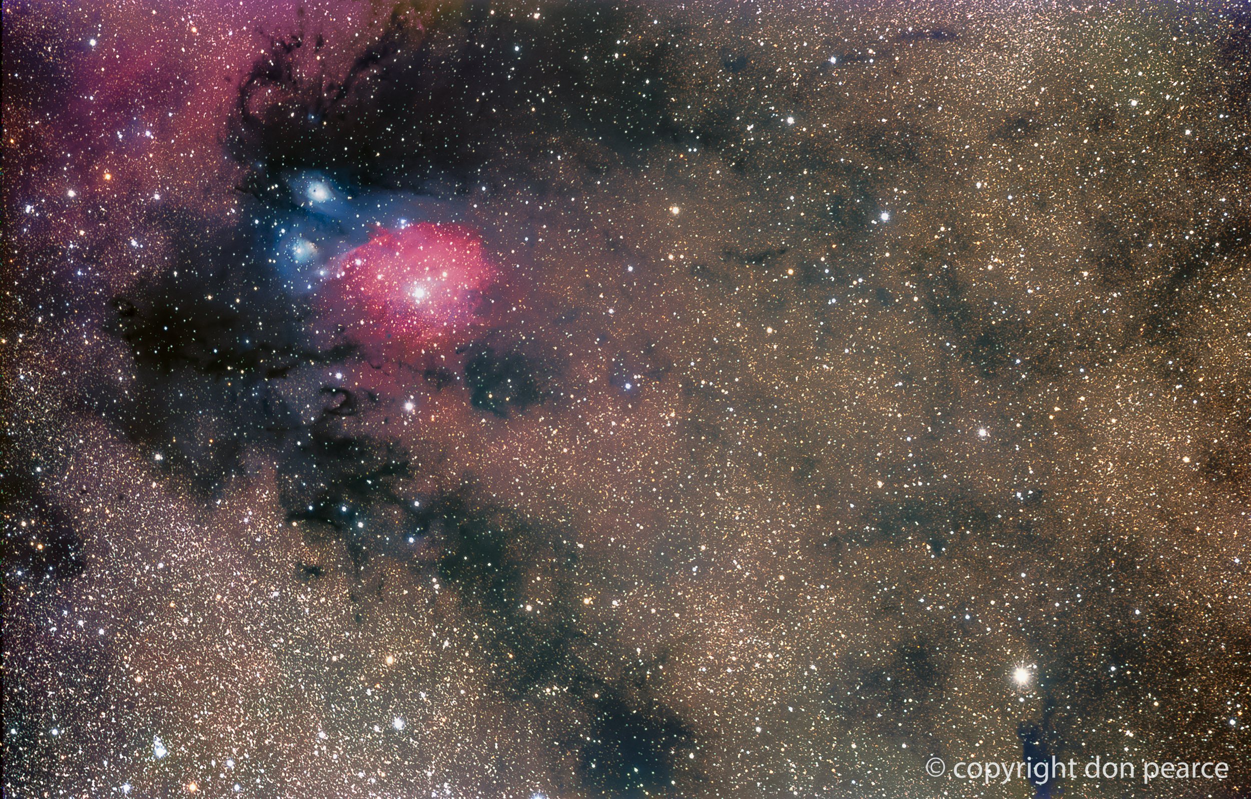 is an emission nebula located near the Small Sagittarius Star Cloud in Sagittarius. I imaged this celestial object because of it’s contrasting position where it lays nested amongst the stars.