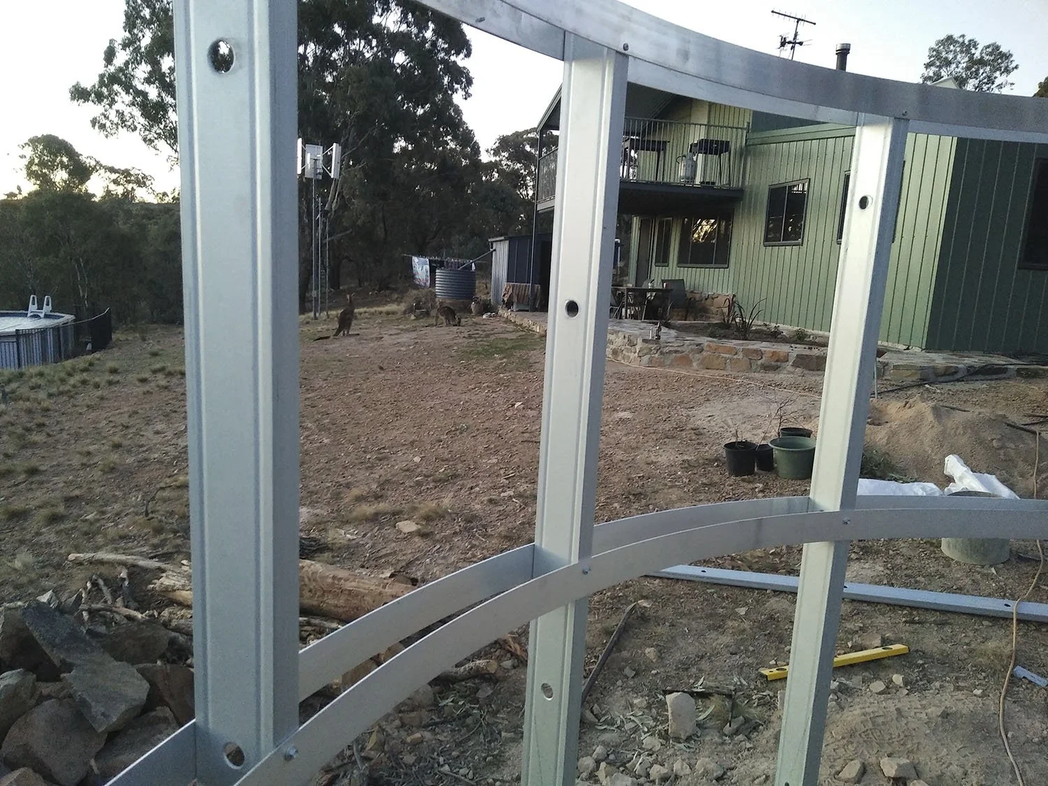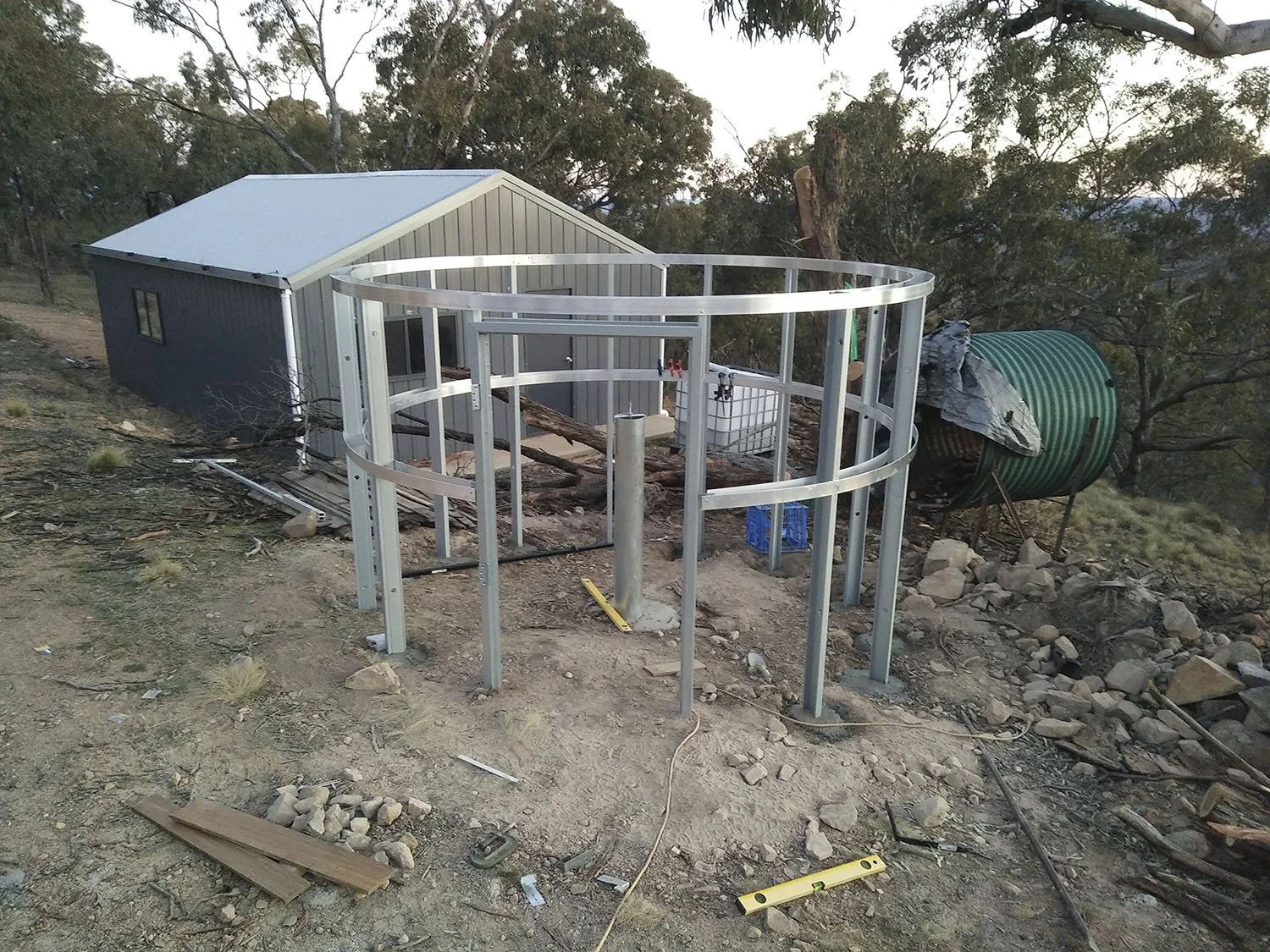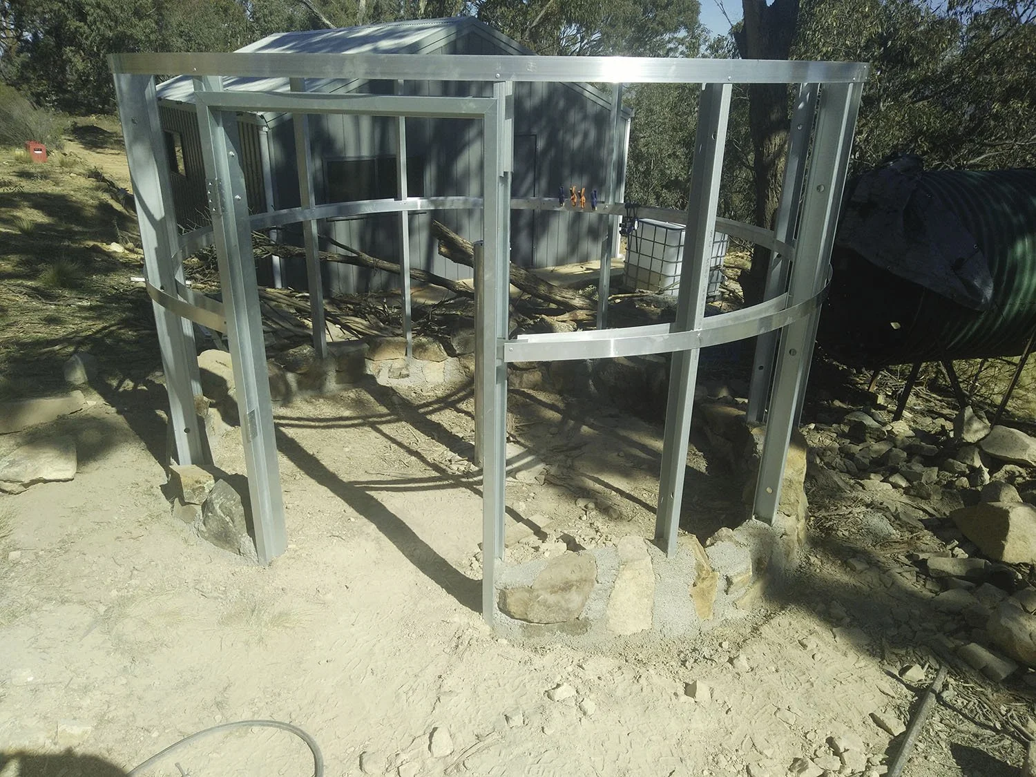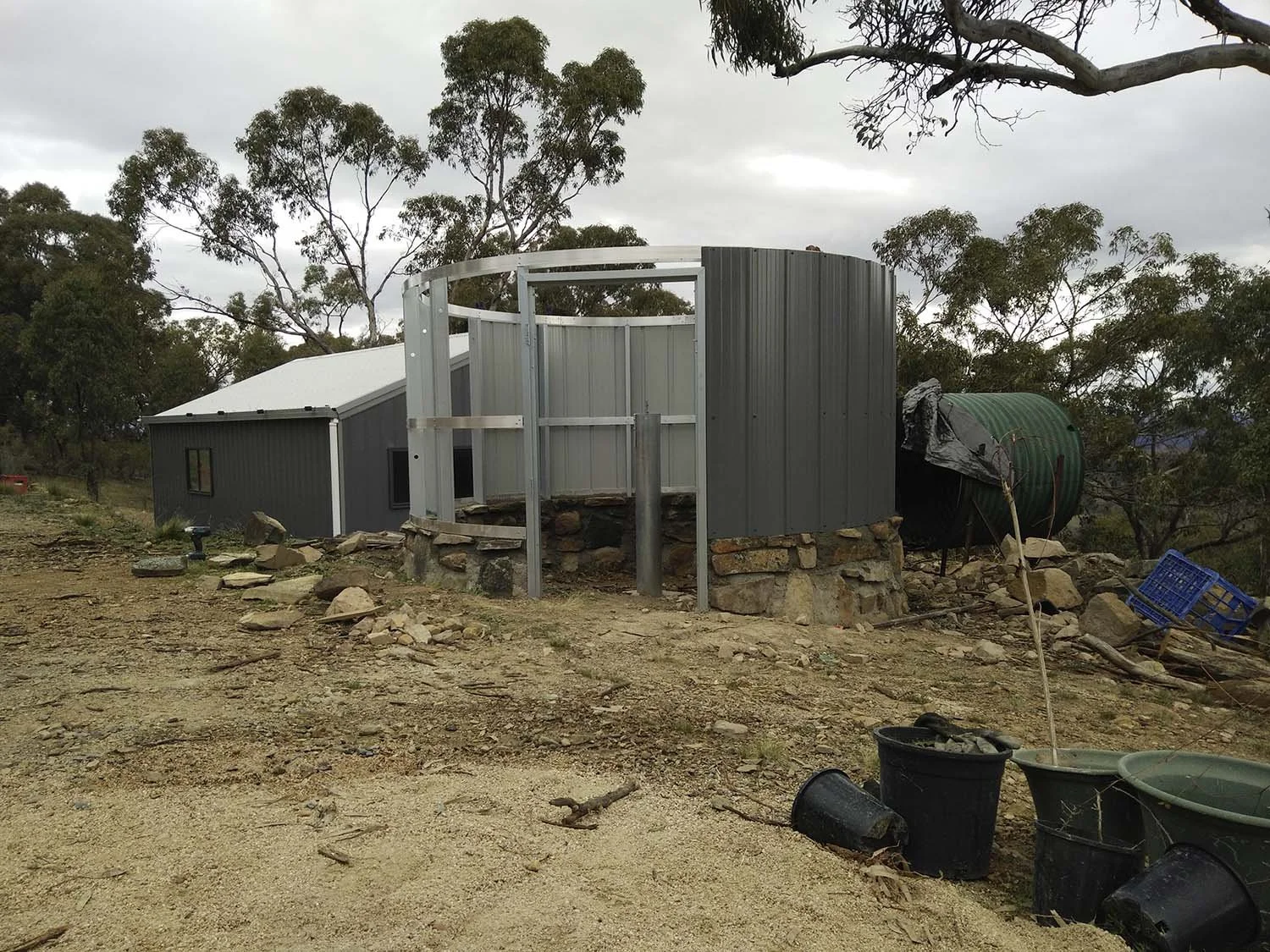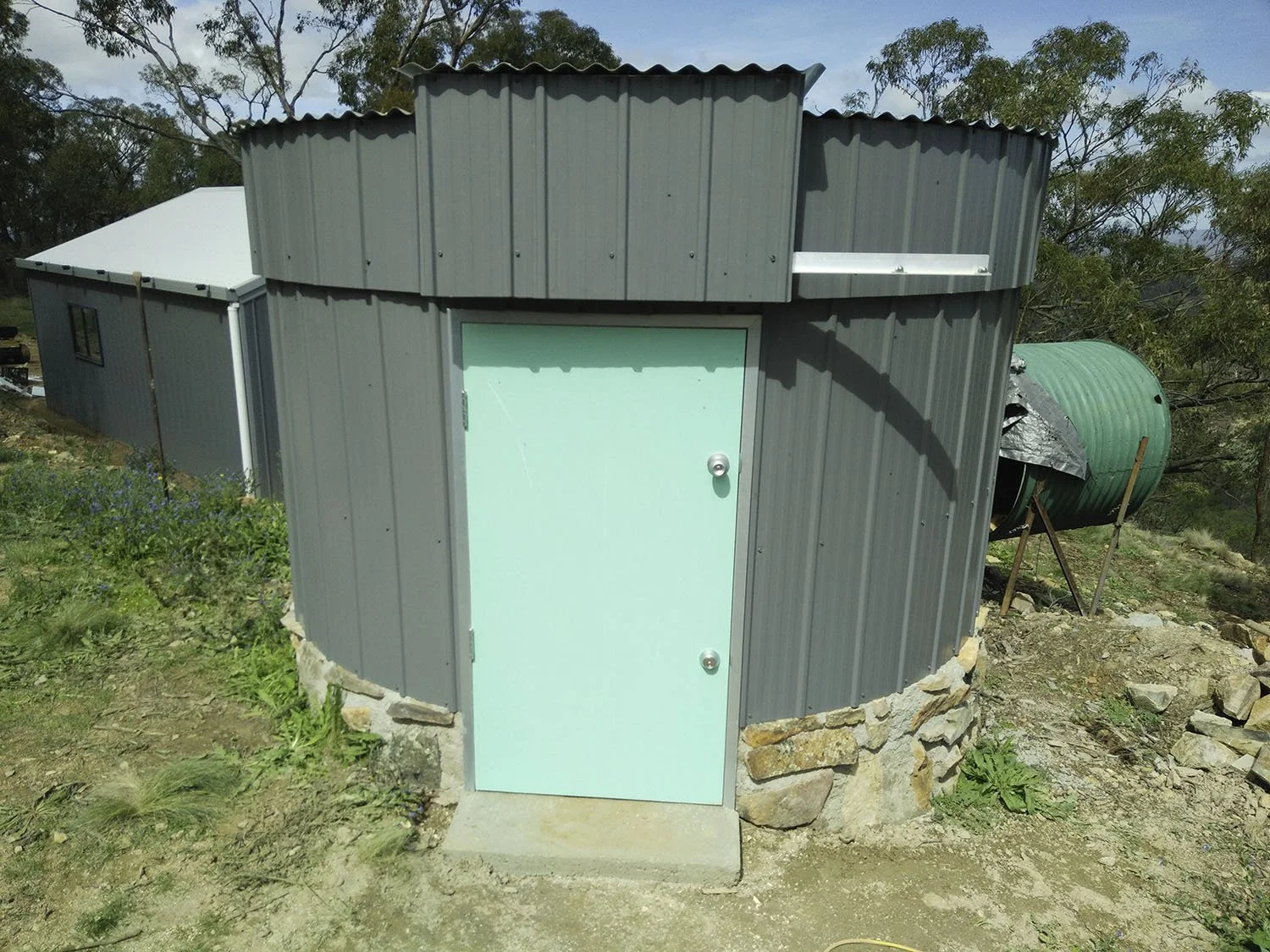 The design of my observatory represents my budget and location. Looking at the price of a fully automated three metre dome observatory was an intimidating factor. My location on top of a ridge in the middle of the surrounding bush lands in a high fire risk area was another major factor. I decided to construct the observatory from stone that I have in abundance on my property to keep construction costs low. I used iron to protect from an amber attack as a plastic or fibreglass dome would not be as fire resistant. The high wind speeds we have at this elevation was the main reason I decided to not build a roll of roof observatory even though this was the simplest and my preferred choice. Having the protection of a roof while observing and photographing meant that the telescope was not being effected as much by the wind.