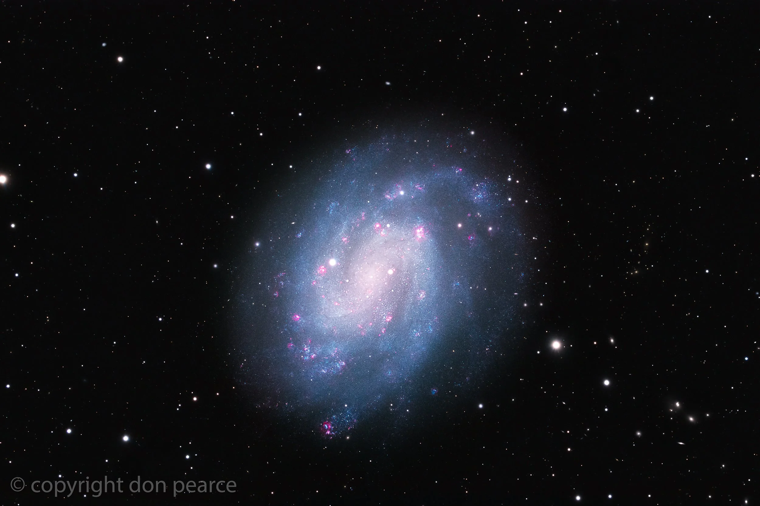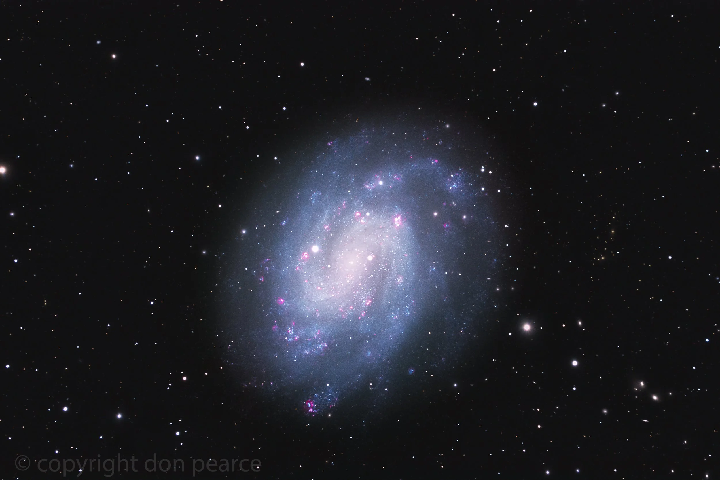 Also known as the Spiral Galaxy in Sculptor, is a spiral galaxy located approximately 6.1 million light-years away from Earth. NGC 300 spans a diameter of around 70,000 light-years, making it slightly larger than our own Milky Way. It features bright blue star-forming regions, where new stars are born. Photographed in October 2023 using an 0.7 focal reducer on my Edge HD Telescope and using a monochrome camera with RGB/HA filters.