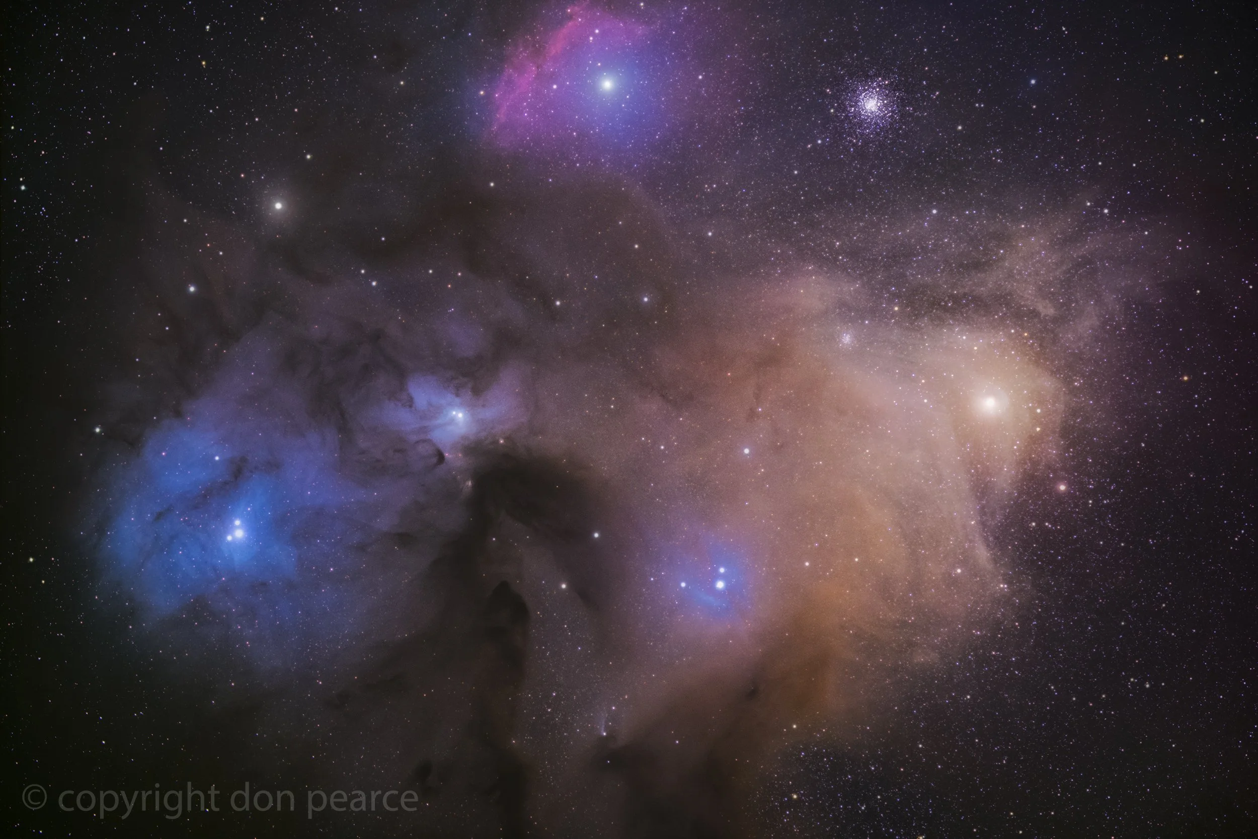 The Rho Ophiuchi Cloud Complex Situated in the constellation of Ophiuchus, this complex is a vast region of dark, emission and reflection nebulae, dotted with colourful stars and surrounded by cosmic illuminated dust. The complex is dominated by the big red giant star Antares. The intertwining dust lanes and intricate structures found within the Rho Ophiuchi Cloud Complex are a breeding ground for new stars. Probably my favourite part of the night sky. I took this image in August 2022 with a small refractor telescope and monochrome cooled astronomy camera using LRGB Filters.
